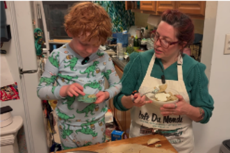 The best part of making this recipe was filling pierogis with Charles. He likes to help in the kitchen, (and to be on YouTube), so I love having him help me when I film.